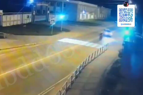На записи заметно, как мотоциклист на большой скорости врезается в белую машину, которая поворачивает на проезжей части. От удара байкер подлетает в воздух и приземляется на проезжую часть.