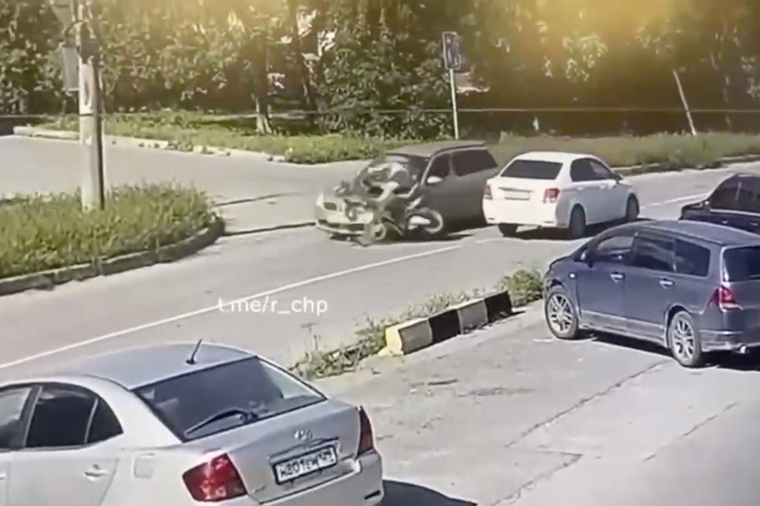 От удара пожилой мужчина получил травмы, несовместимые с жизнью. На кадрах видно, что ехавший перед ним автомобиль остановился, чтобы пропустить встречный транспорт. Мужчина на мопеде объехал его сзади, чтобы срезать путь, и ударился о левое крыло проезжавшей машины. После этого он взлетел в воздух и упал на асфальт.
