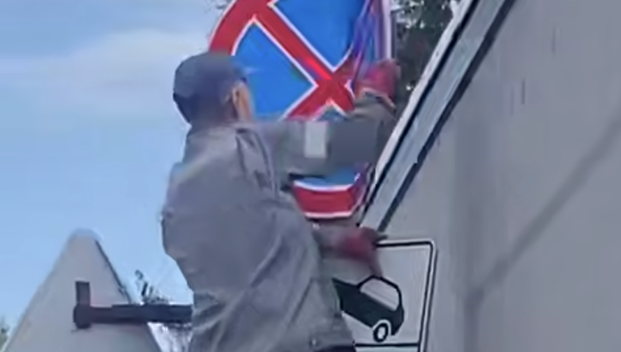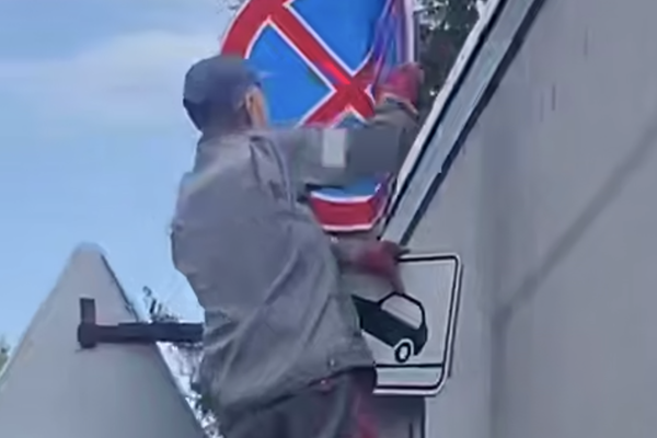 «Получил очень «увлекательное» видео, спасибо автору за неравнодушие: в самом сердце Омска группа товарищей курочит дорожные знаки, чтобы большегруз мог протиснуться на узкую улочку. Подготовились, как надо, даже стремянку прихватили», — сообщил Шелест.