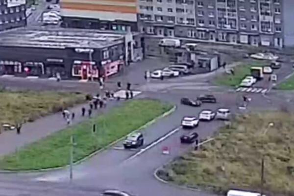 Уличная камера запечатлела инцидент. На кадрах видно, как черный автомобиль Kia сталкивается с машиной Renault, после чего та выезжает на тротуар и сбивает людей. Судя по всему, водитель потерял управление.
