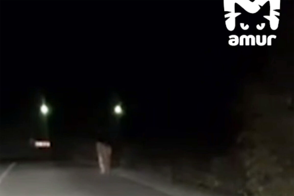 В Приморье на видео попало, как редчайший хищник гулял по проезжей части