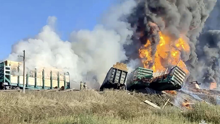 Отмечается, что инцидент произошел 26 сентября в районе 8 часов утра. В ликвидации задействованы более 40 специалистов и 10 единиц техники. На место выдвинулись пожарный и восстановительный поезда.