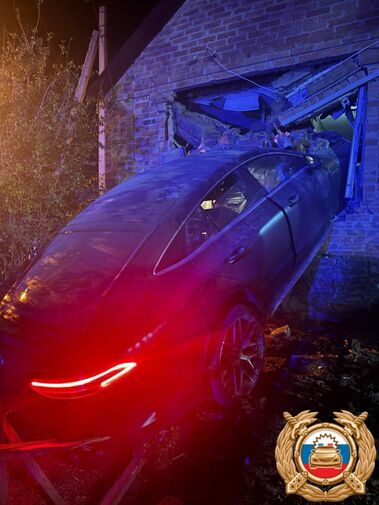 На кадрах с места происшествия видно, что черный кроссовер Mercedes-Benz проломил кирпичную стену дома, выбил окна и повис в образовавшемся проломе. Передняя часть машины оказалась в помещении. Ее задние колеса остались на земле. При этом у автомобиля была включена аварийная сигнализация.