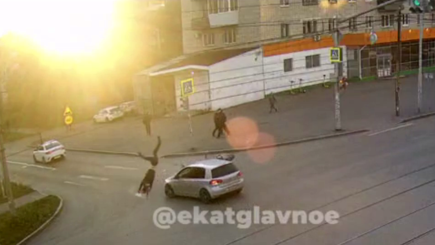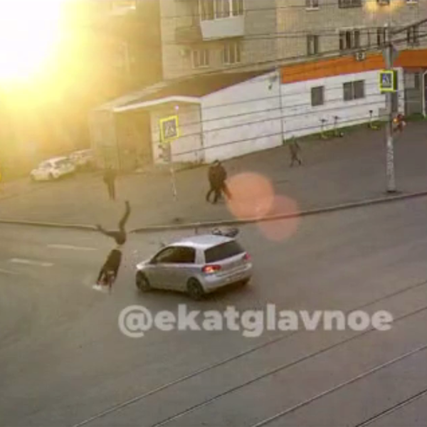 В Екатеринбурге мотоциклист сделал сальто через автомобиль в момент ДТП. Об этом сообщает Telegram-канал «Екатеринбург. Главное».