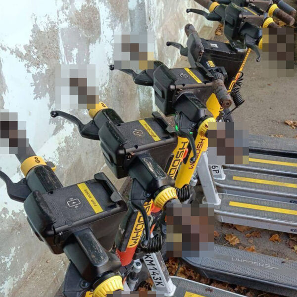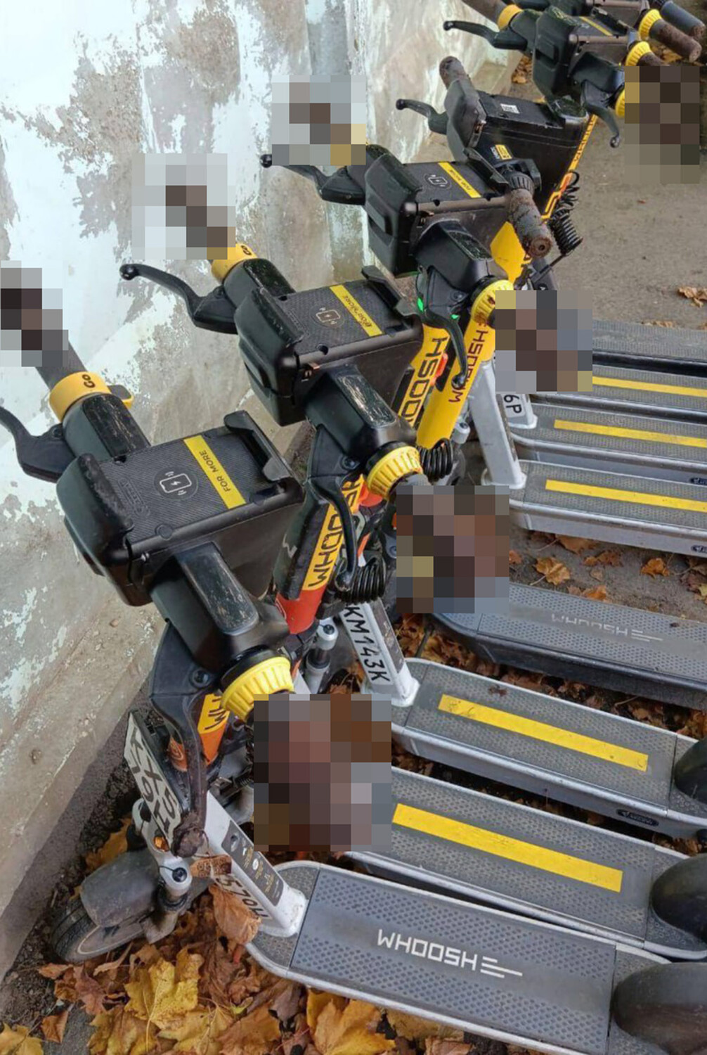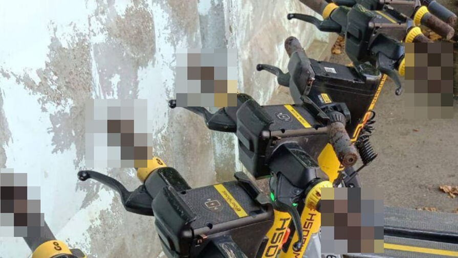 На опубликованных в сети кадрах видно, что ручки у восьми электросамокатов обмазаны фекалиями.