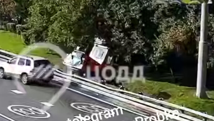 Уличная камера запечатлела инцидент. На кадрах видно, как водитель фронтального погрузчика выезжает на обочину дороги, чтобы избежать столкновения с грузовиком. Далее на записи заметно, как транспорт переезжает через дорожное ограждение и останавливается.