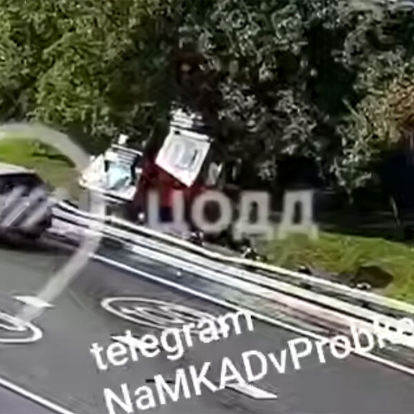 В Москве на МКАД фронтальный погрузчик перелетел через дорожное ограждение в момент ДТП. Об этом сообщает Telegram-канал «На МКАДе ДТП Москва».