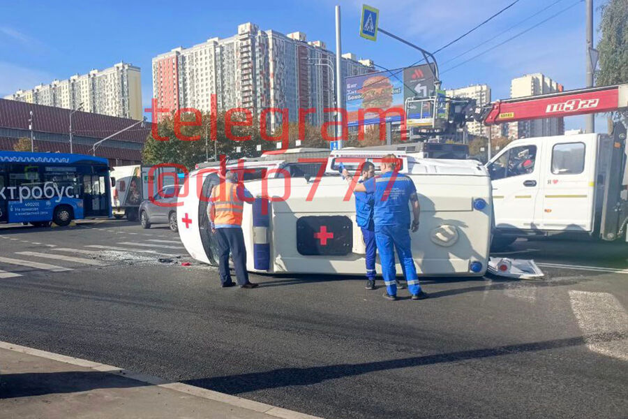 В Москве скорая с медиками перевернулась в ДТП с электробусом