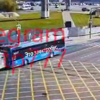 На опубликованных в сети кадрах видно, как автомобиль экстренных служб выезжает на перекресток на запрещающий сигнал светофора, где его сбивает электробус.