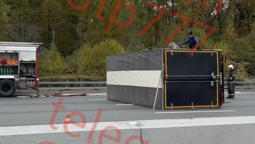 Завалившийся на бок грузовик перекрыл несколько полос на МКАД в Москве. Кадры опубликовал Telegram-канал «ДТП и ЧП МОСКВА и МО».