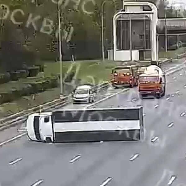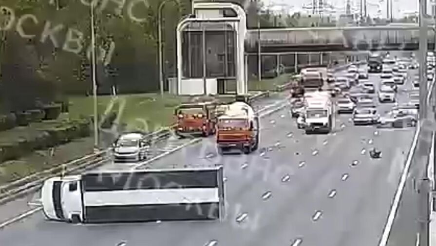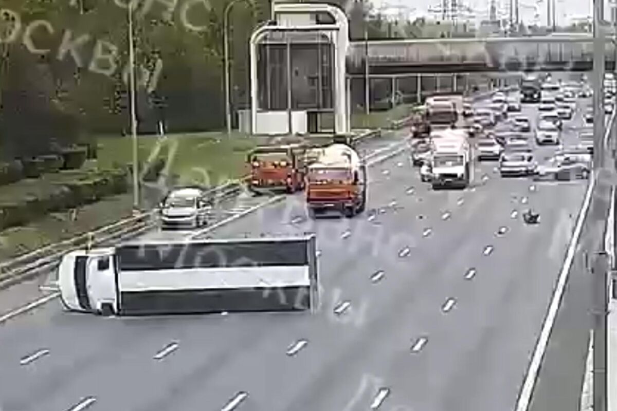 На видео попал момент массового ДТП с грузовиком, заблокировавшим МКАД в Москве