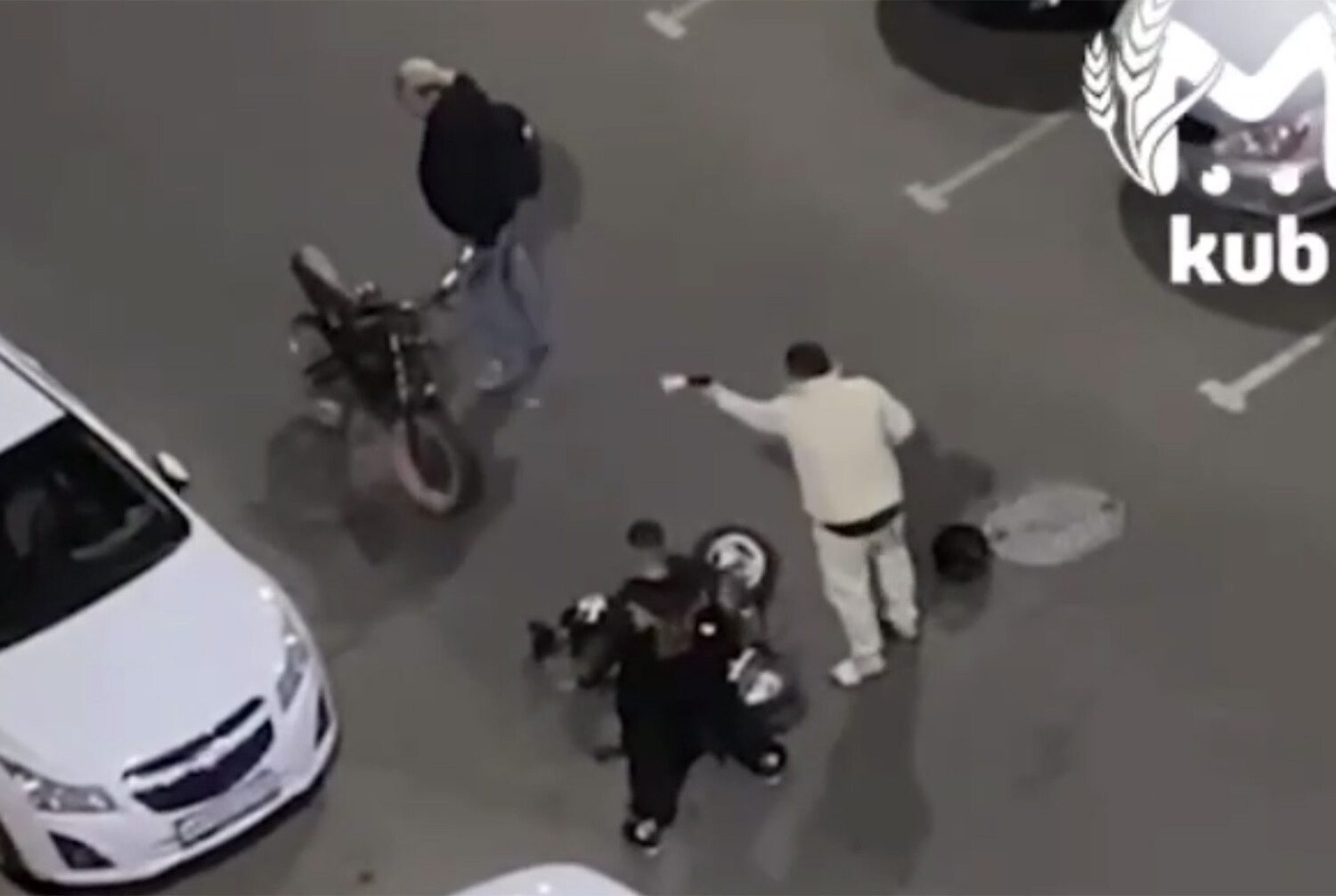 На опубликованных в сети кадрах видно, что мужчины начинают драку на проезжей части, и в этот момент один из конфликтующих стреляет в своего оппонента.