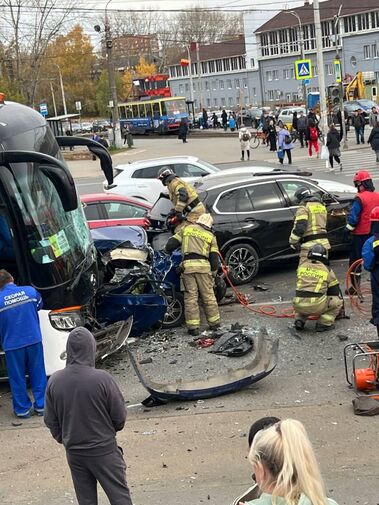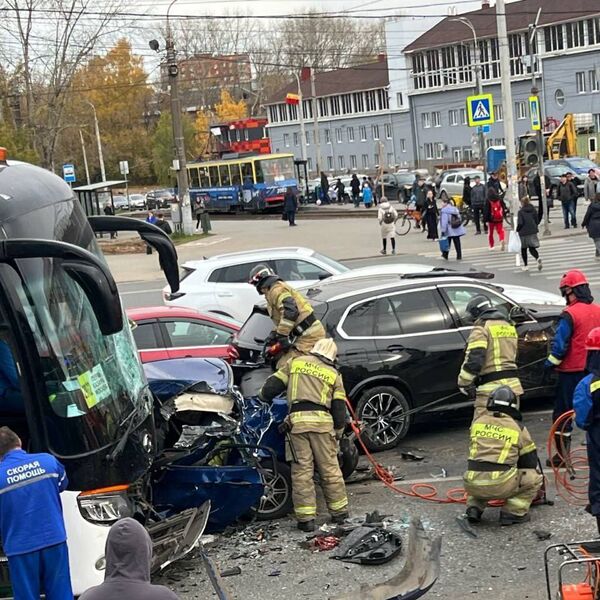 «Все произошло на пересечении Удмуртской и улицы Кирова: столкнулись рейсовый автобус «Казань-Пермь» и три легковых автомобиля. Предварительно, одна из машин влетела в пешеходов», — говорится в сообщении.