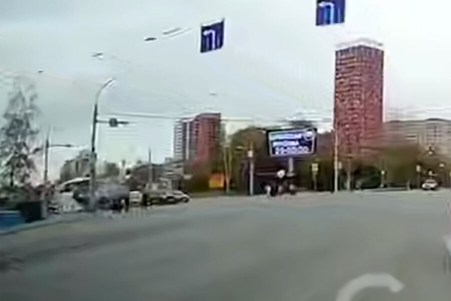 Видеорегистратор автомобиля, водитель которого стал очевидцем произошедшего, запечатлел инцидент. На кадрах видно, как легковая машина на большой скорости сбивает людей на пешеходном переходе и врезается в лобовое стекло пассажирского автобуса. Кроме того, на записи заметно, как после удара один из пешеходов подлетает в воздух, переворачивается и падает на проезжую часть.