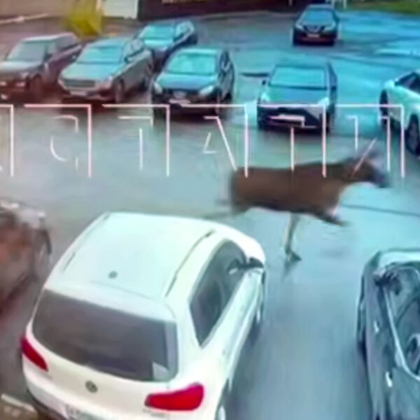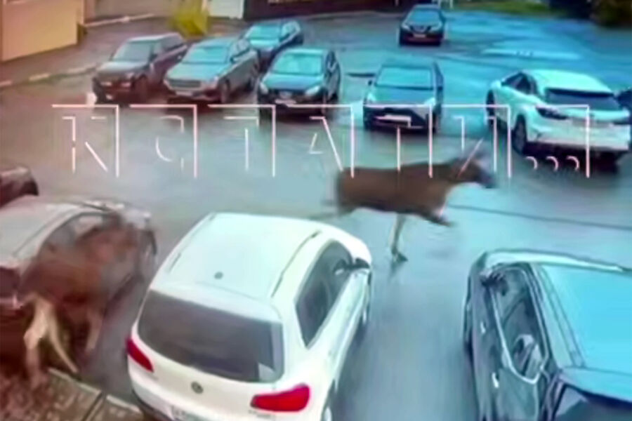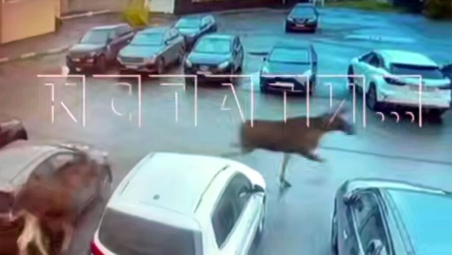 Уличная камера запечатлела инцидент. На кадрах видно, как животные бегут по парковке, при этом они возвращаются, проходят мимо машин и снова убегают.