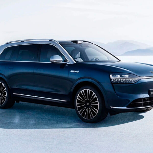 Длина автомобиля составляет 5230 мм, кроссовер оснащен последовательной гибридной установкой. В нее входят бензиновый двигатель мощностью 152 л.с., который используется для подзарядки тяговой батареи емкостью 42 либо 52 кВт.ч. Суммарная мощность — 496 л.с.