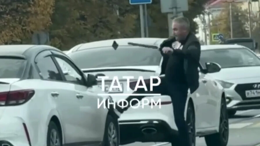 На видео, опубликованном агентством «Татар-Информ», видно, что мужчина с силой бьет полицейской резиновой дубинкой по стеклам автомобиля, а затем наносит удар ногой по боковому зеркалу.