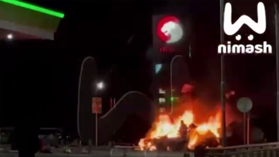 На опубликованных в сети кадрах видно, как на заправочной станции горит машина.