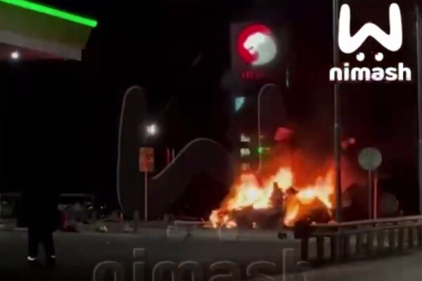 На опубликованных в сети кадрах видно, как на заправочной станции горит машина.