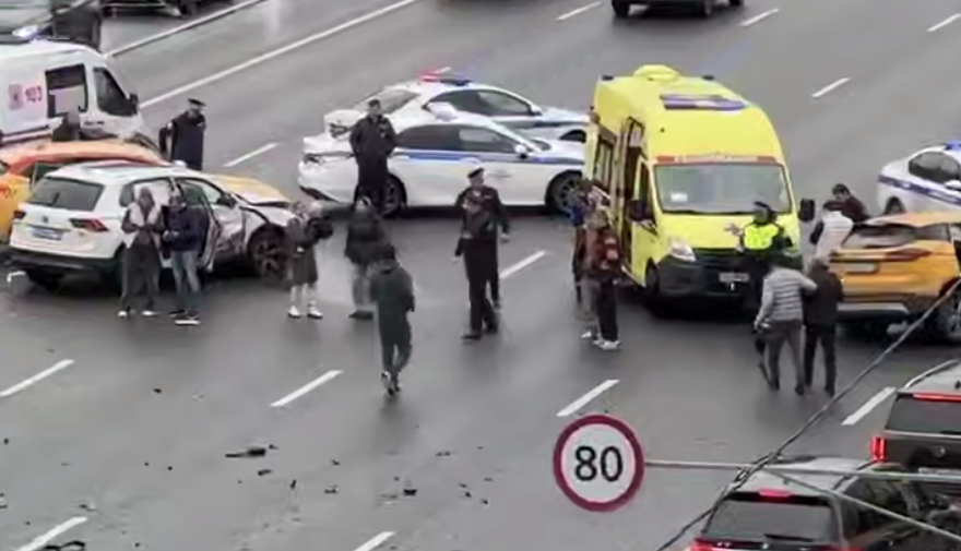 На видео попали последствия массовой аварии на Кутузовском проспекте в Москве