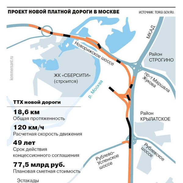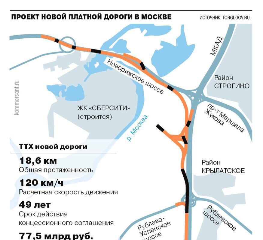 Власти Москвы опубликовали документы, подтверждающие планы города заключить концессионное соглашение по строительству новой автотрассы на западе Москвы, сообщает «Коммерсантъ».