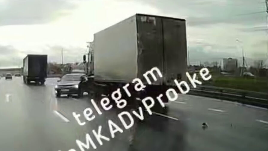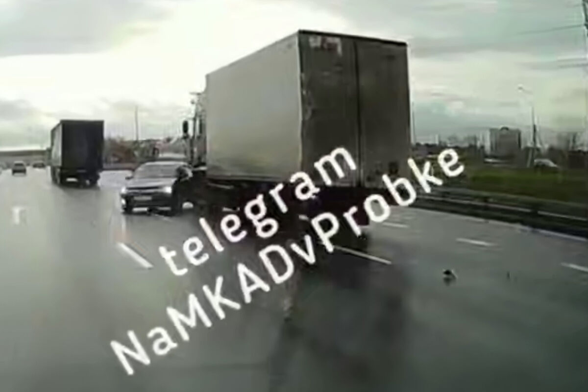 Видео: на МКАД легковушка вылетела на встречную полосу после ДТП с грузовиком