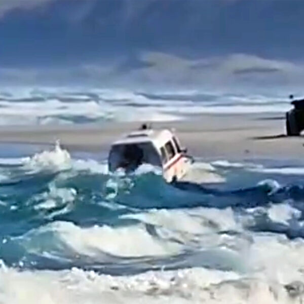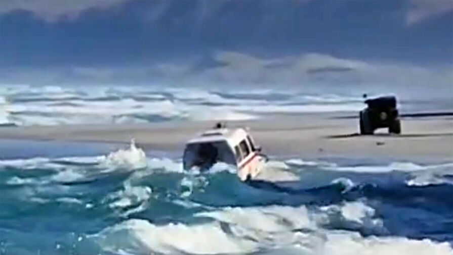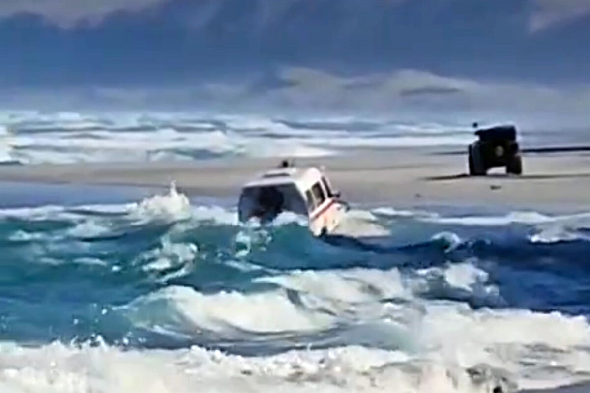 Видео: вездеход со спасателями смыло волной в открытом море на Курилах