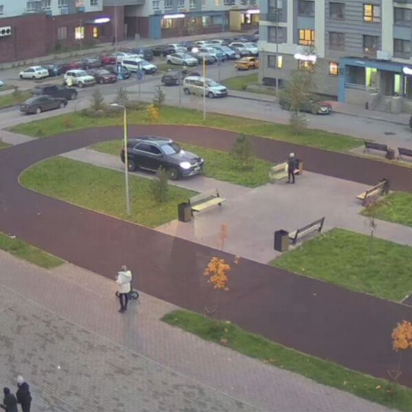 На кадрах виден кроссовер черного цвета, водитель которого остановился при въезде в пешеходную зону. Затем он продолжил движение и проехал по детской площадке, уткнувшись бампером в скамейку. На расстоянии от автомобиля собрались прохожие, включая матерей с маленькими детьми. Они сняли нарушителя на видео. Утверждается, что местные жители неоднократно жаловались на поведение водителя.