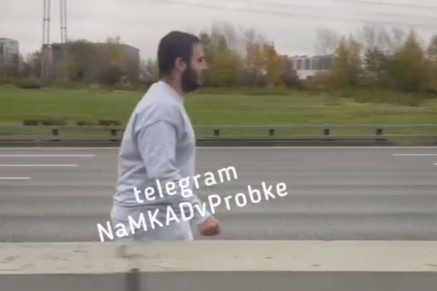 Очевидцы запечатлели инцидент. На кадрах видно, как мужчина идет рядом с дорожным ограждением, при этом мимо него проезжает большое количество автомобилей. На записи также заметно, что человек одет в серую кофту и штаны, при этом на улице октябрь.