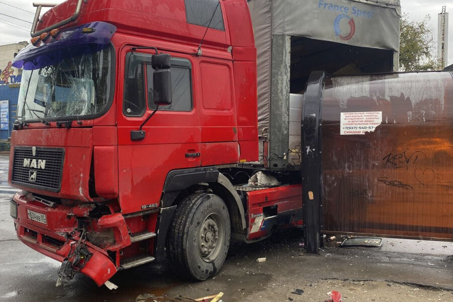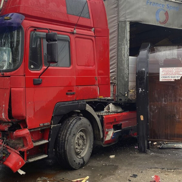 На кадрах с места инцидента заметно, что грузовик серьезно пострадал, на передней части есть крупные повреждения.