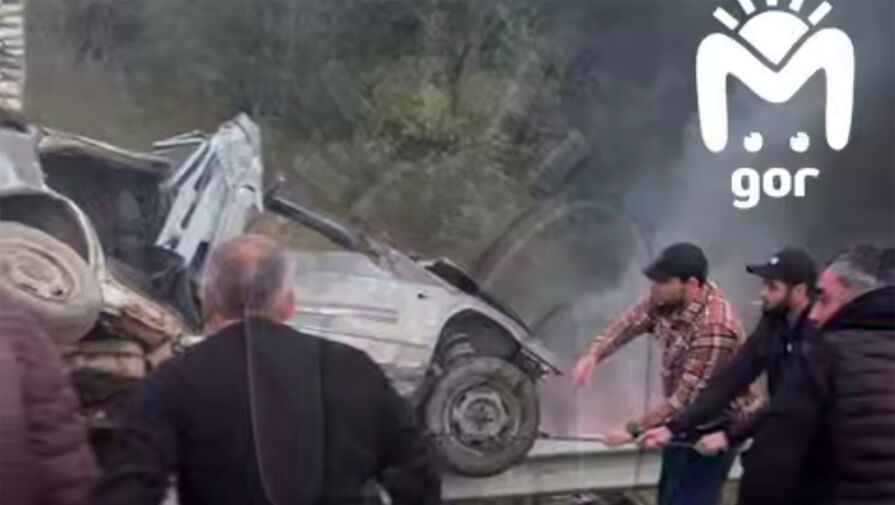 Mash: машина перелетела через отбойник и загорелась в ДТП в Карачаево-Черкесии