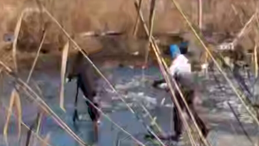 Кадры инцидента опубликовал Telegram-канал «АКАТУЙСКИЙ». На кадрах видно, как двое детей передвигаются на самокатах по заледенелой воде.