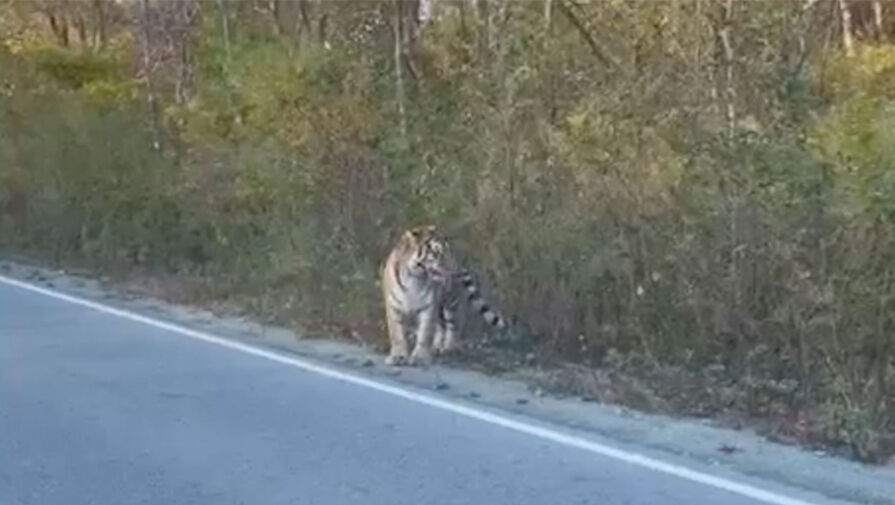 В Приморском крае тигр вышел на трассу. Об этом сообщает Telegram-канал Newsbox24.tv.