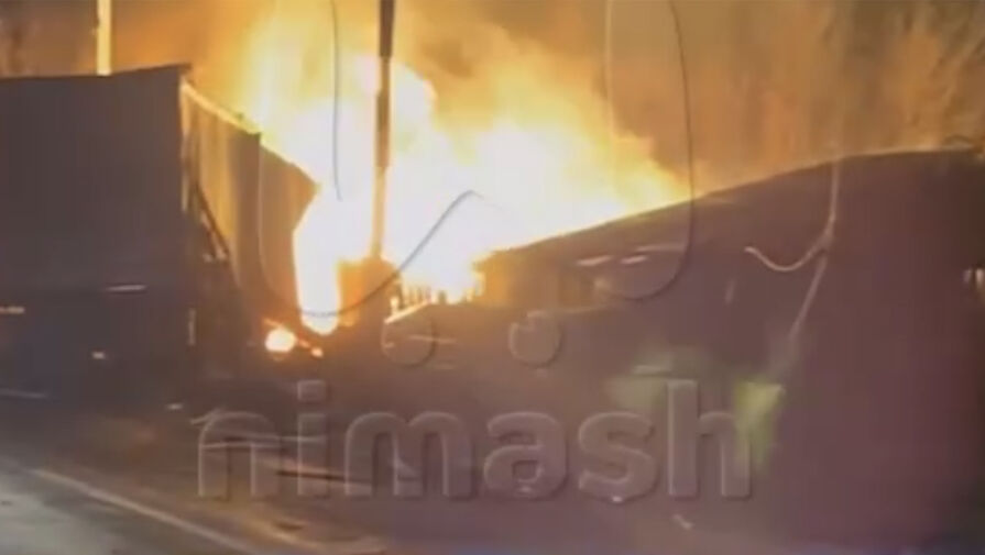 Под Нижним Новгородом фура протаранила газовую трубу, вспыхнула и попала на видео