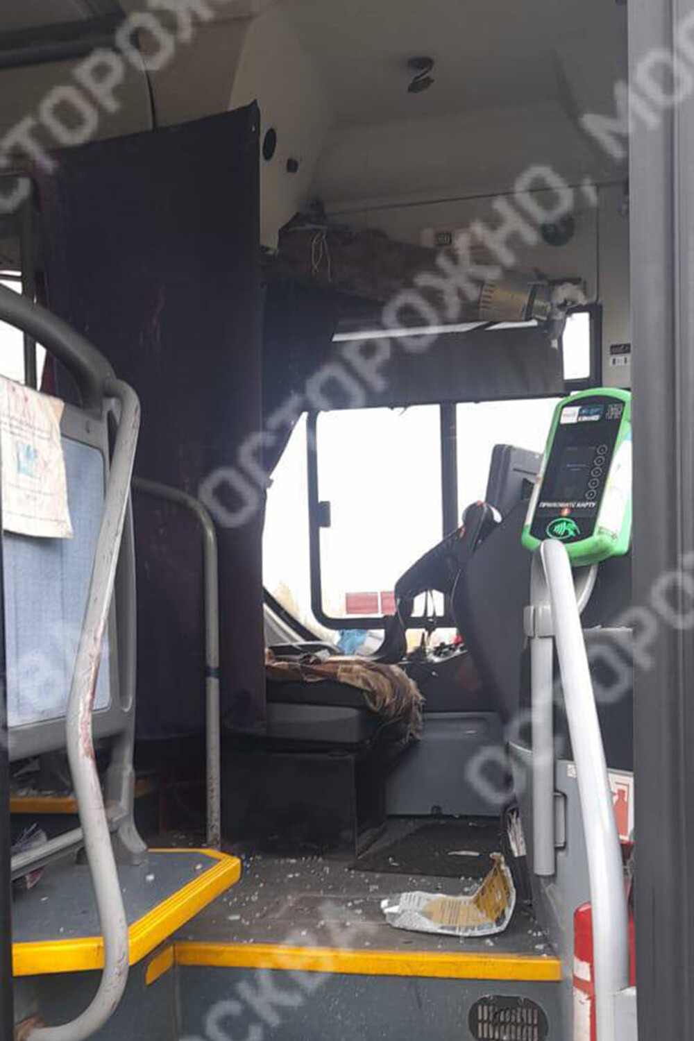 «На кадрах видно, как предположительно, хвостовая часть сбитого беспилотника пробила кабину пассажирского автобуса», — говорится в сообщении.
