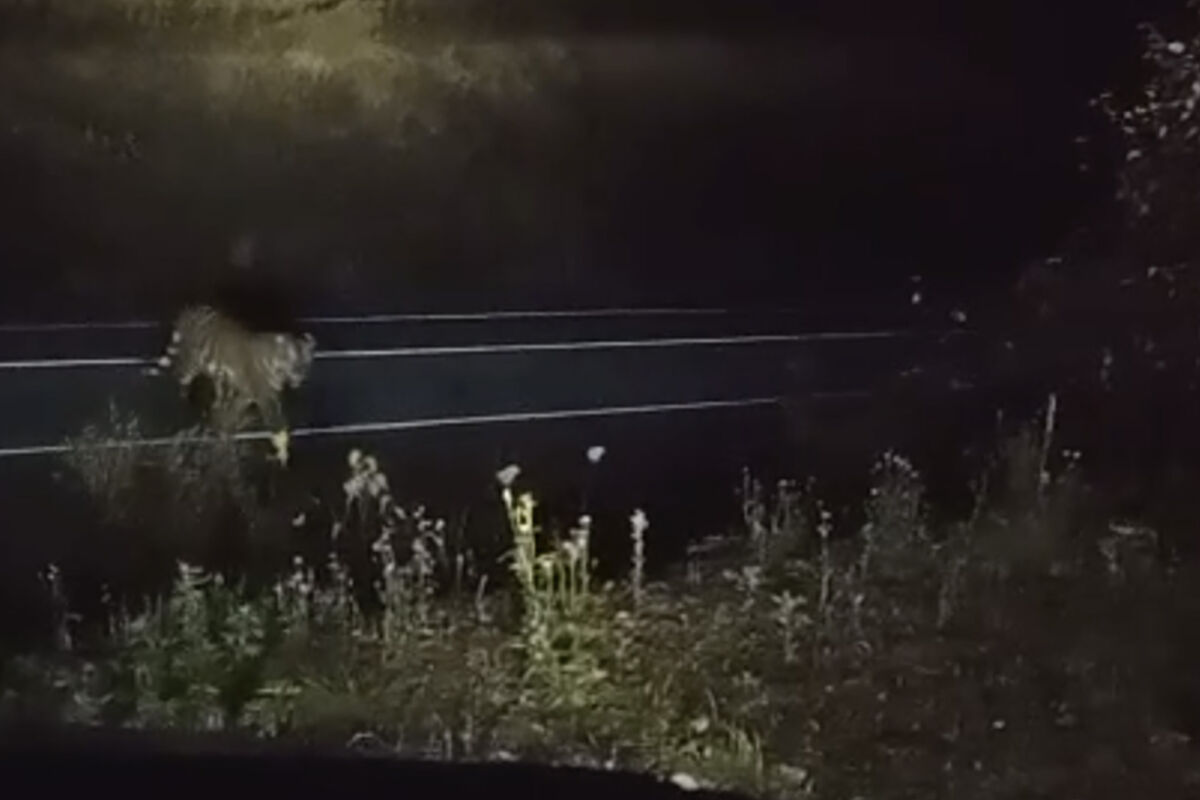 Крупный хищник заблокировал приморцев в автомобиле и попал на видео