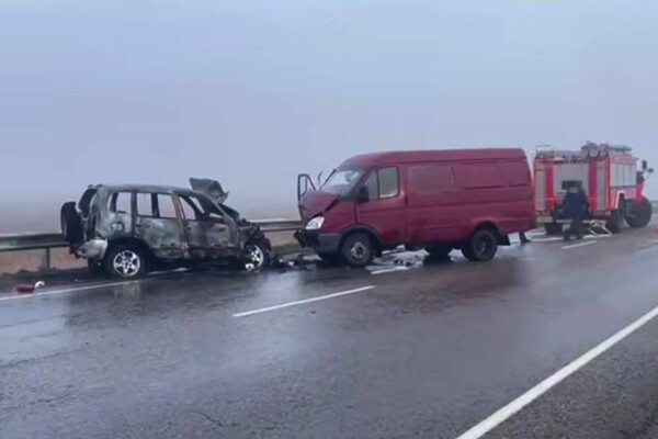 На видео попали последствия ДТП с пожаром под Ростовом-на-Дону