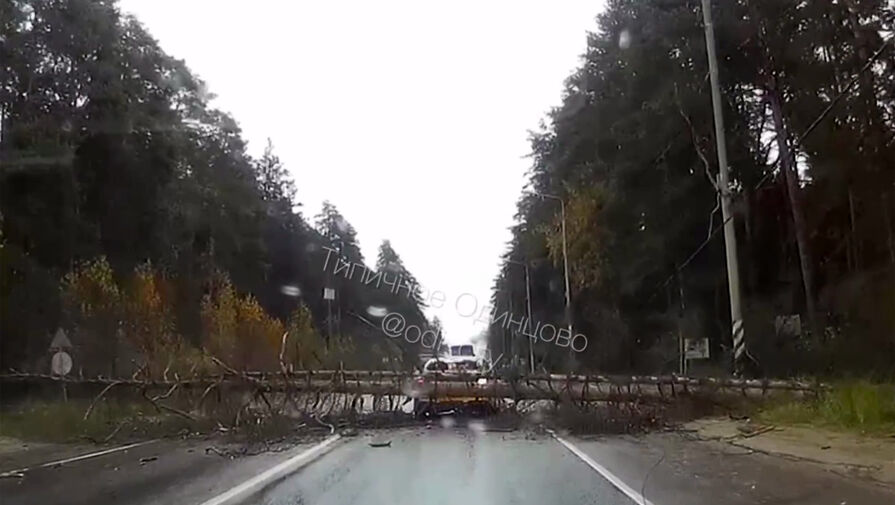 В Одинцовском городском округе дерево упало на дорогу перед автомобилем такси, водитель врезался в препятствие. Об этом сообщает Telegram-канал «Типичное Одинцово» и публикует видеозапись инцидента.