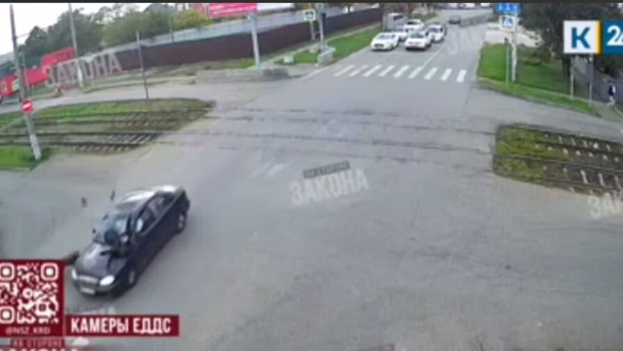 Уличная камера запечатлела инцидент. На кадрах видно, как байкер врезается в проезжающий легковой автомобиль, от удара он перелетает через капот, делая сальто, и приземляется на дорогу.