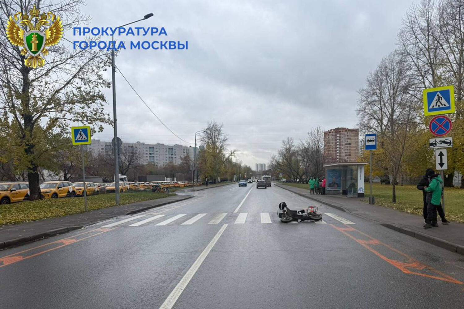 В Москве курьер на электромопеде влетел в пожилую женщину на переходе