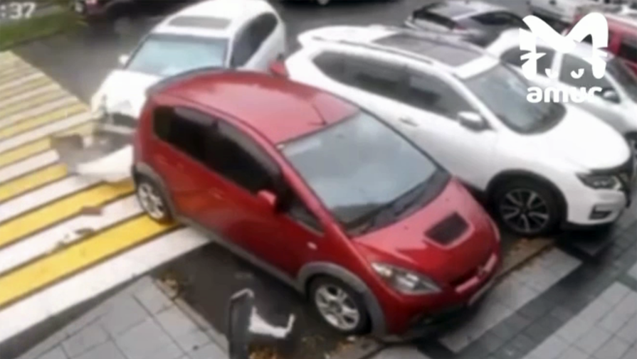 Во Владивостоке водительница на Honda влетела в автомобили на парковке. Об этом сообщает Telegram-канал Amur Mash.