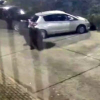 Уличная камера запечатлела инцидент. На кадрах видно, как крупный хищник медленное идет возле припаркованных автомобилей, при этом людей рядом с животным нет.