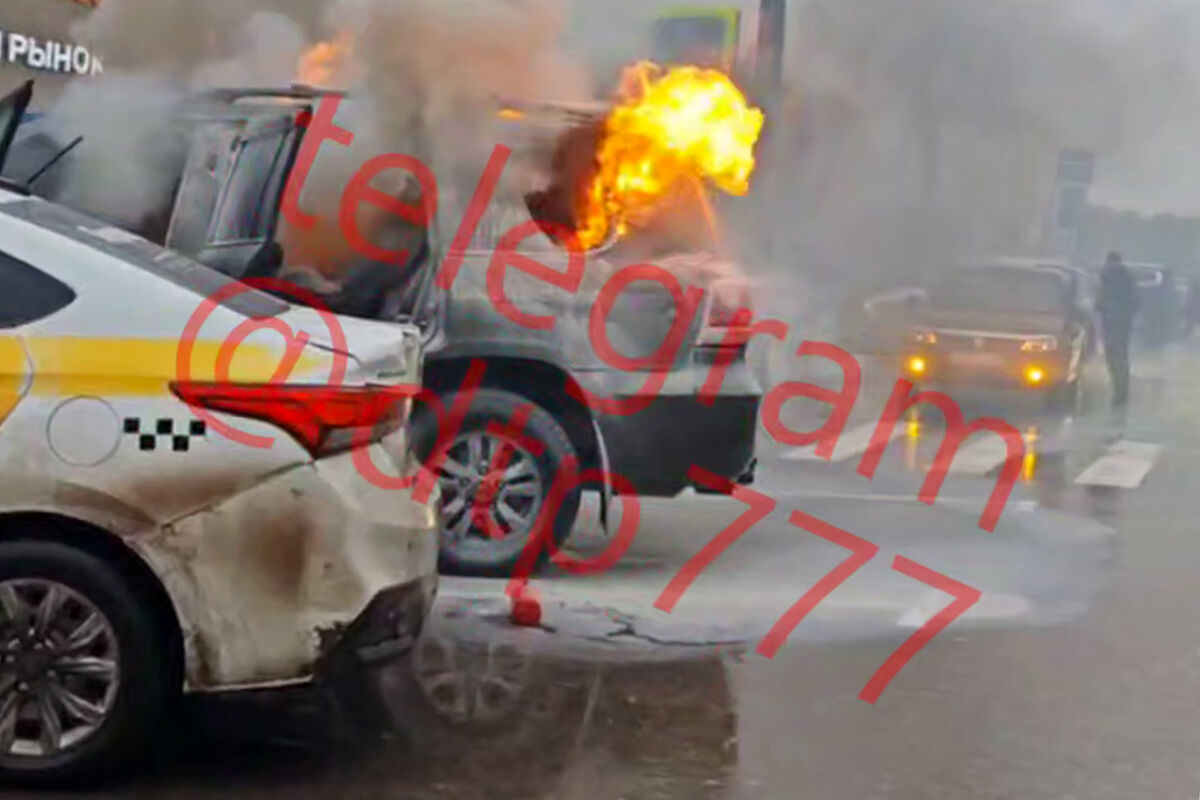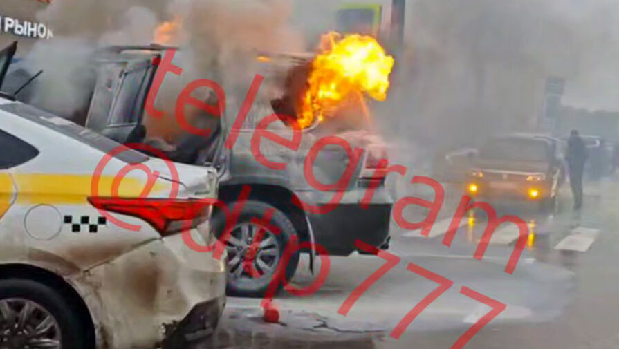 Toyota Land Cruiser вспыхнул на парковке ТЦ в Москве и попал на видео