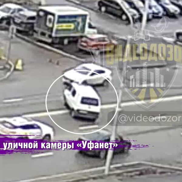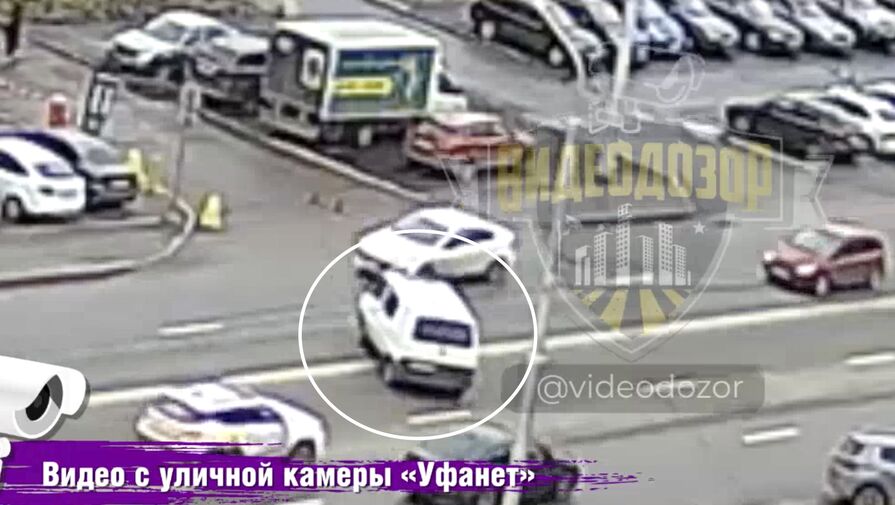 В Уфе автомобиль без водителя пришел в движение, пересек оживленную улицу и врезался в грузовик. Видеозапись инцидента опубликовал Telegram-канал «Видеодозор».