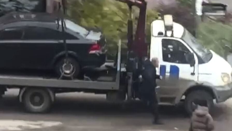 На кадрах с места происшествия виден эвакуатор ГАЗ «Валдай», который везет по дворовому проезду седан Opel Astra. Рядом с грузовиком бежит высокий мужчина в черной куртке, стараясь держаться рядом с кабиной.