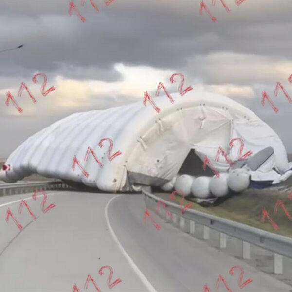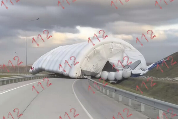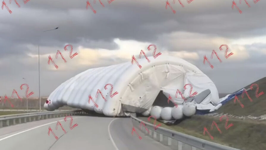 «Огромный надувной шатер сдуло прямо на дорогу в Новосибирске. Инцидент произошел несколько дней назад, когда в регионе бушевал сильный ветер», — говорится в публикации.