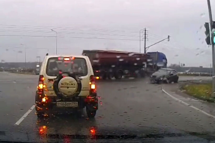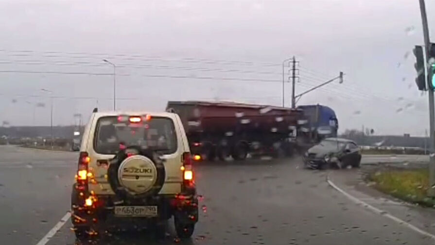 В Подольске водитель большегруза влетел в иномарку на перекрестке. Об этом сообщает телеканал «Москва 24».