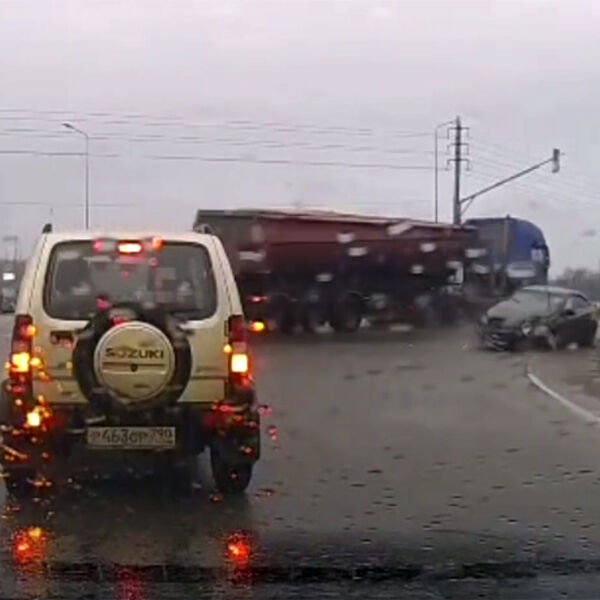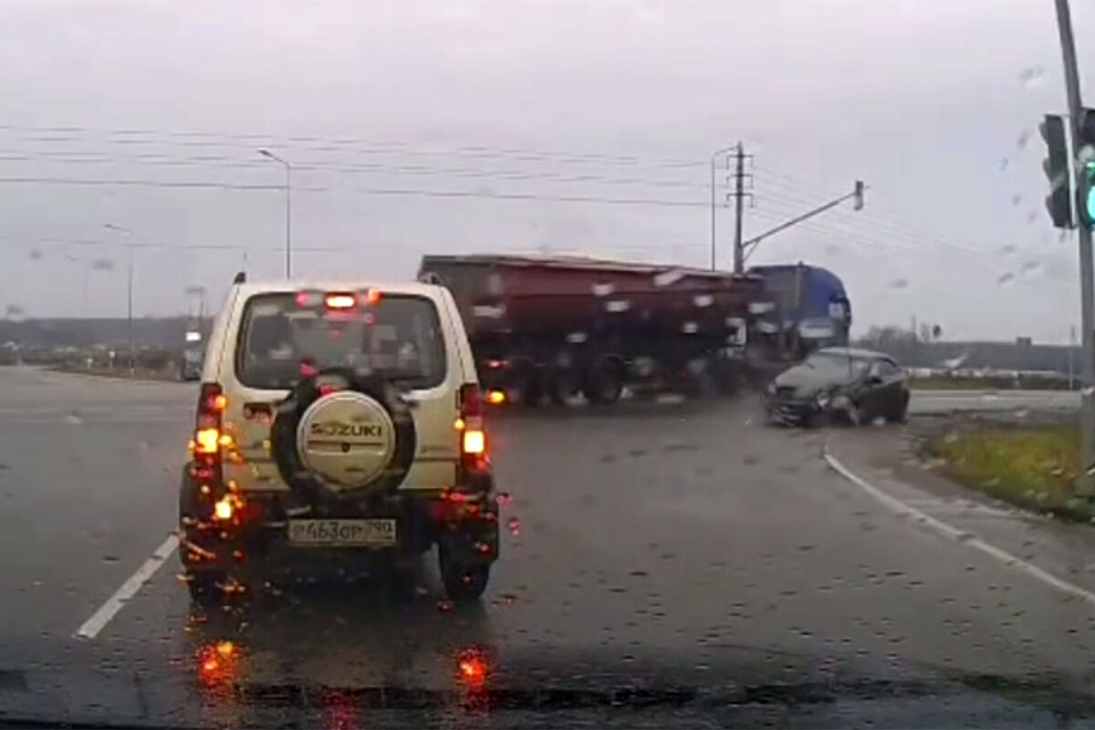«По словам очевидцев, автолюбитель за рулем иномарки поспешил проехать перекресток не дождавшись зеленого сигнала светофора. В этот момент завершал маневр водитель грузовика», — передает канал.