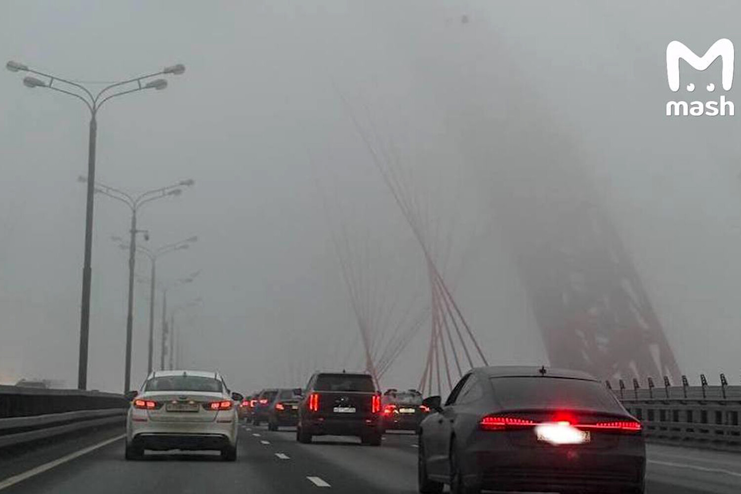 В Москве дороги окутал густой туман. Об этом пишет Telegram-канал Mash.