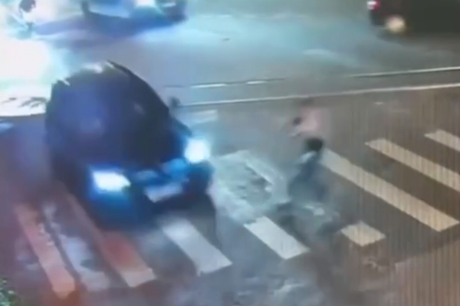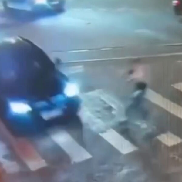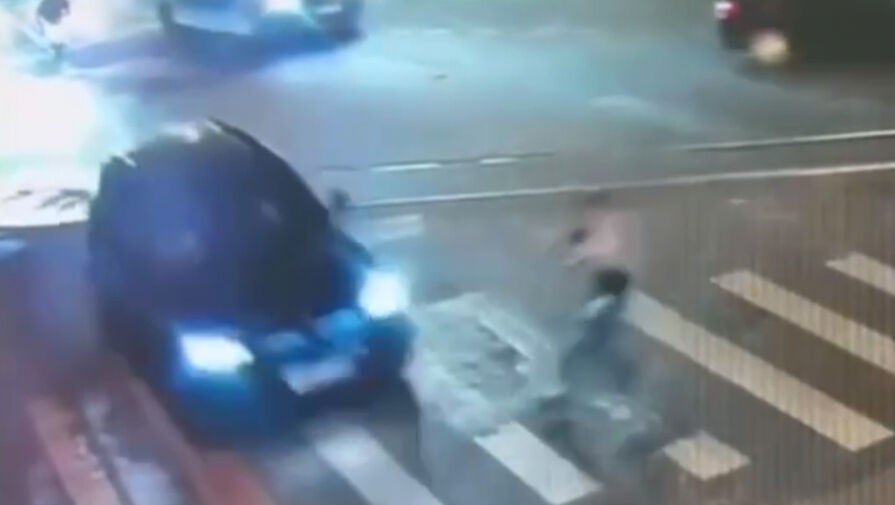 Уличная камера запечатлела инцидент. На кадрах видно, как пешеход разгоняется и начинает перебегать проезжую часть, в этот момент на переход выезжает черная машина, в которую врезается человек. От удара мужчина отлетает в сторону и падает на дорогу